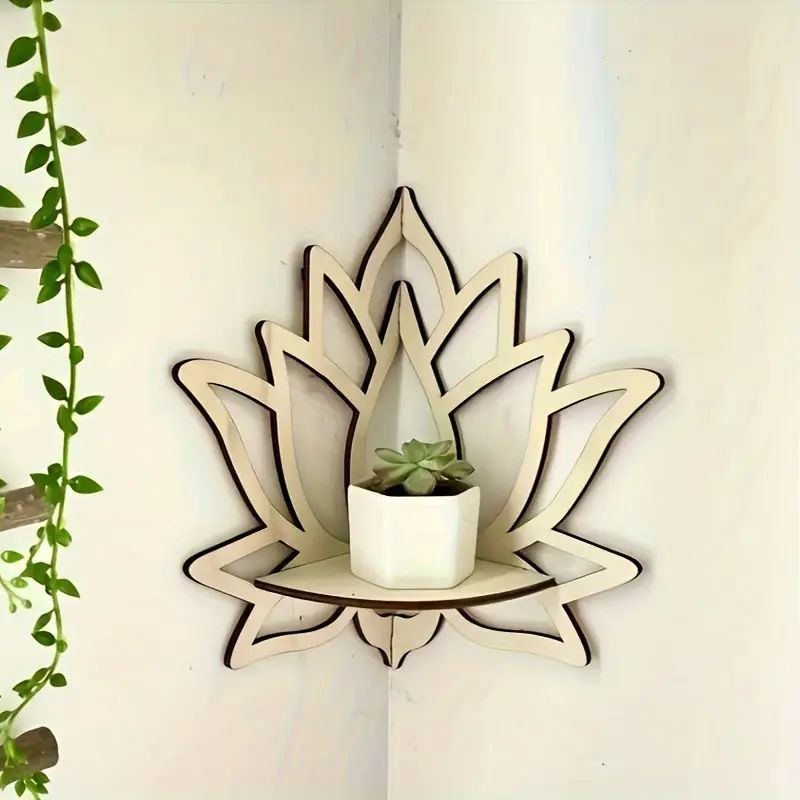 Etajeră de Perete din Lemn în Formă de Lotus - Suport Artistic pentru Expunere, Ideal pentru Decor Minimalist, Design Compact, Lucrat Manual