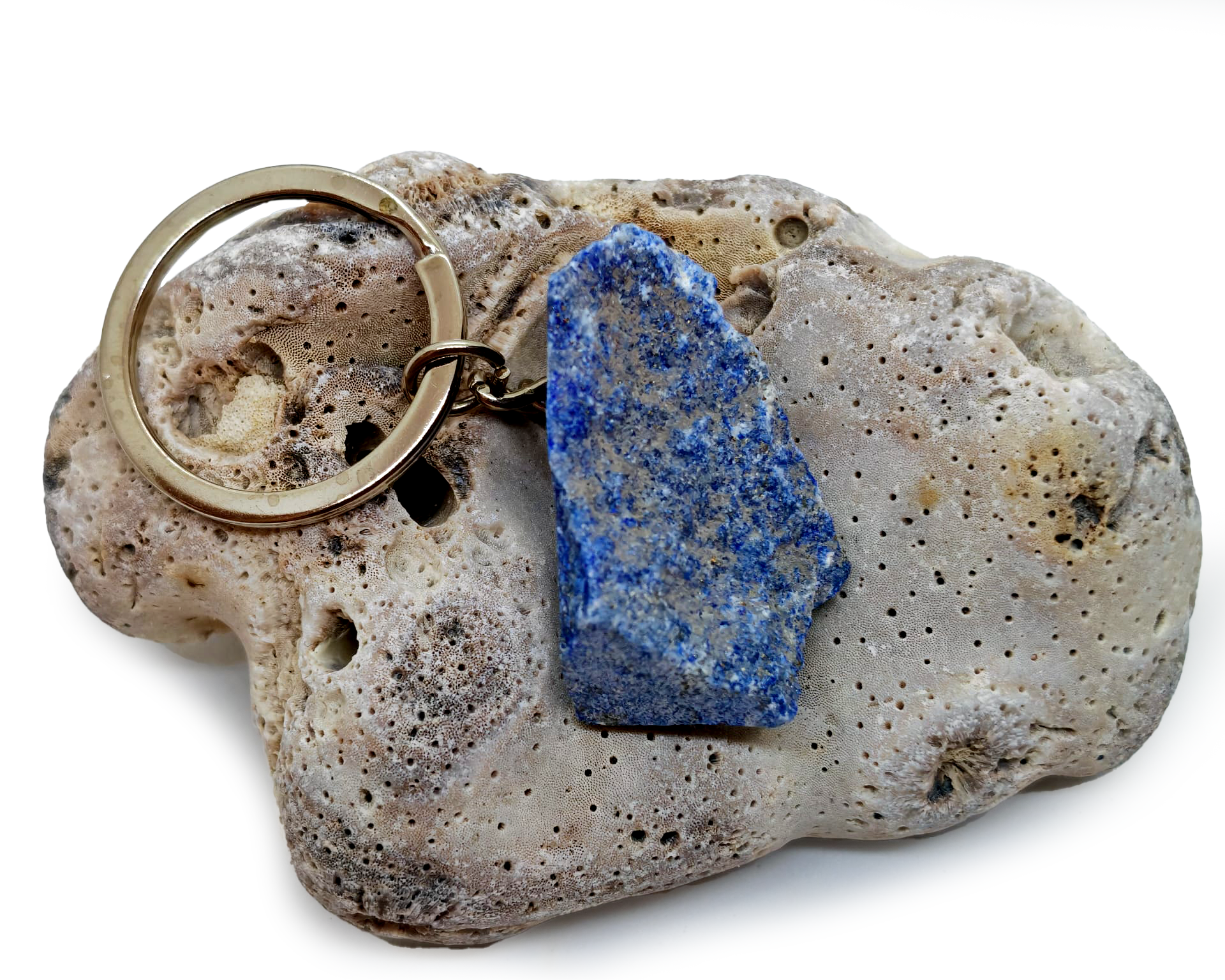 Breloc pentru Chei cu Piatră Naturală Brută, lapis lazuli