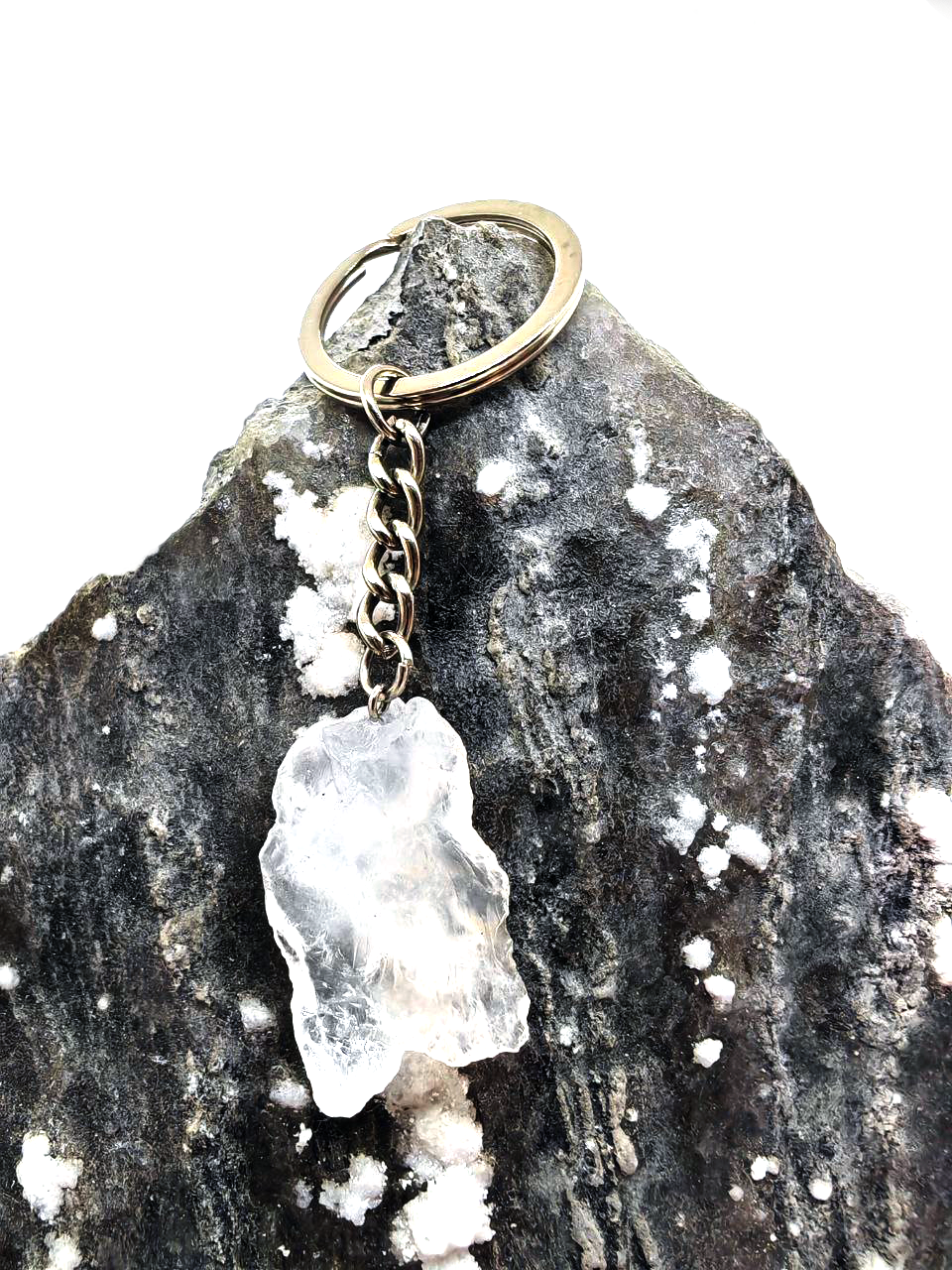 Breloc pentru Chei cu Piatră Naturală Brută, cuart transparent