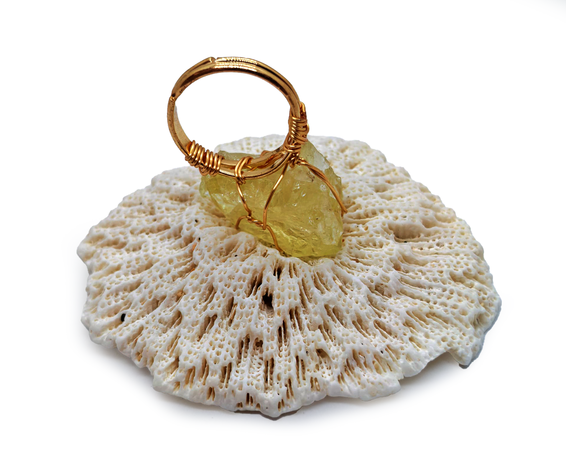 Inel ajustabil cu cristal natural din piatră brută de citrin