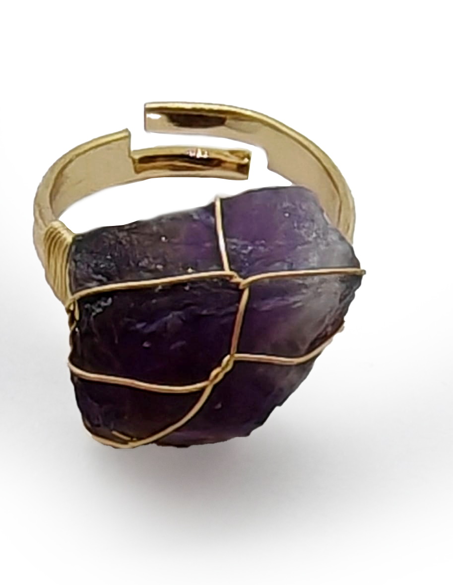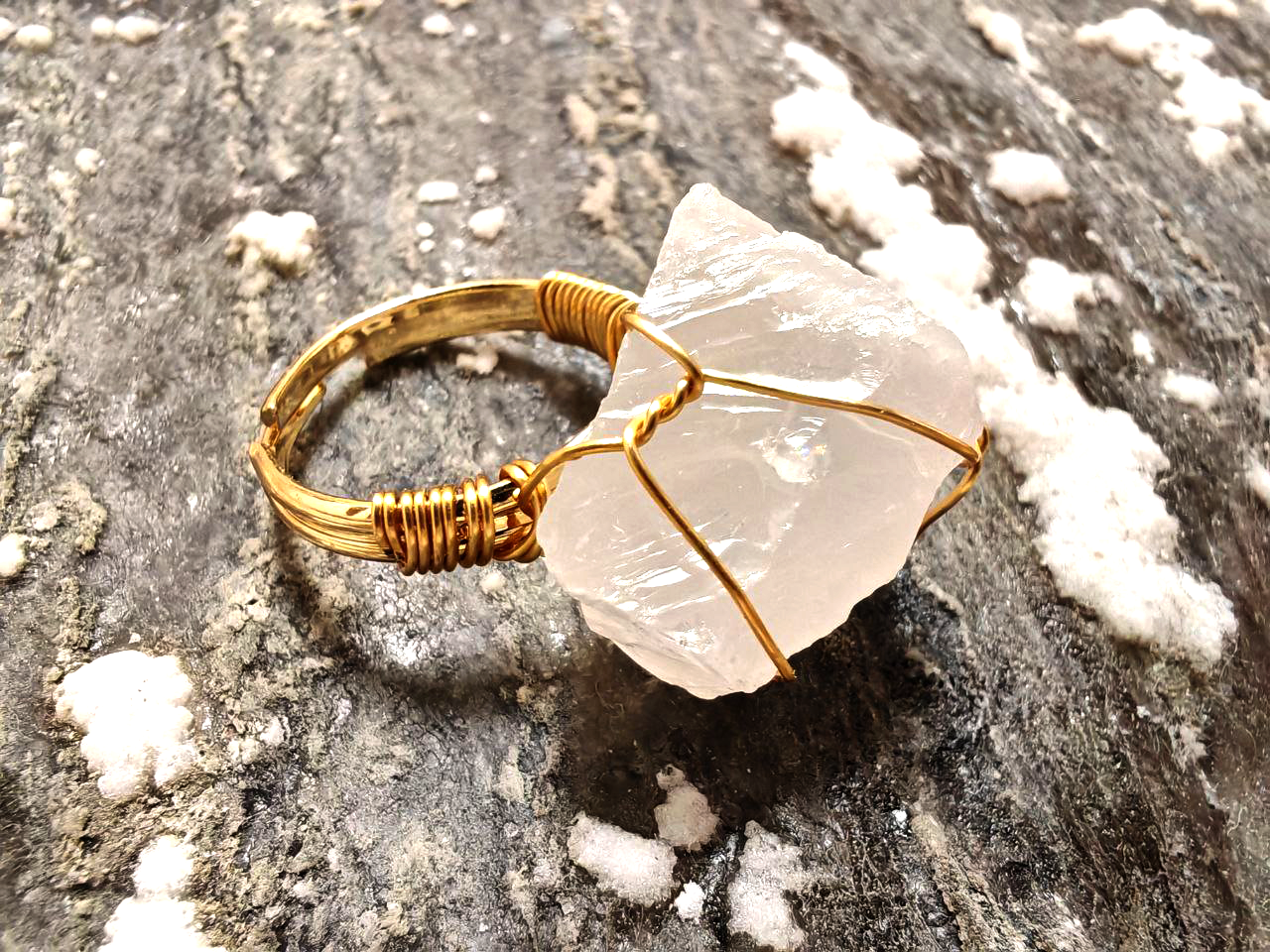 Inel ajustabil cu cristal natural din piatră brută de cuarț transparent